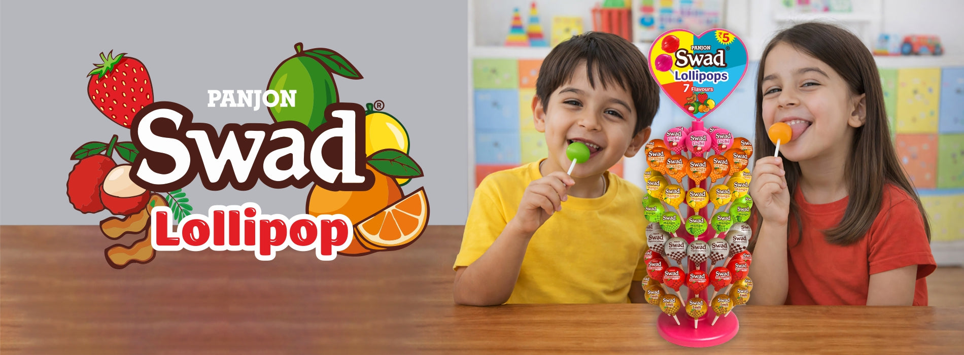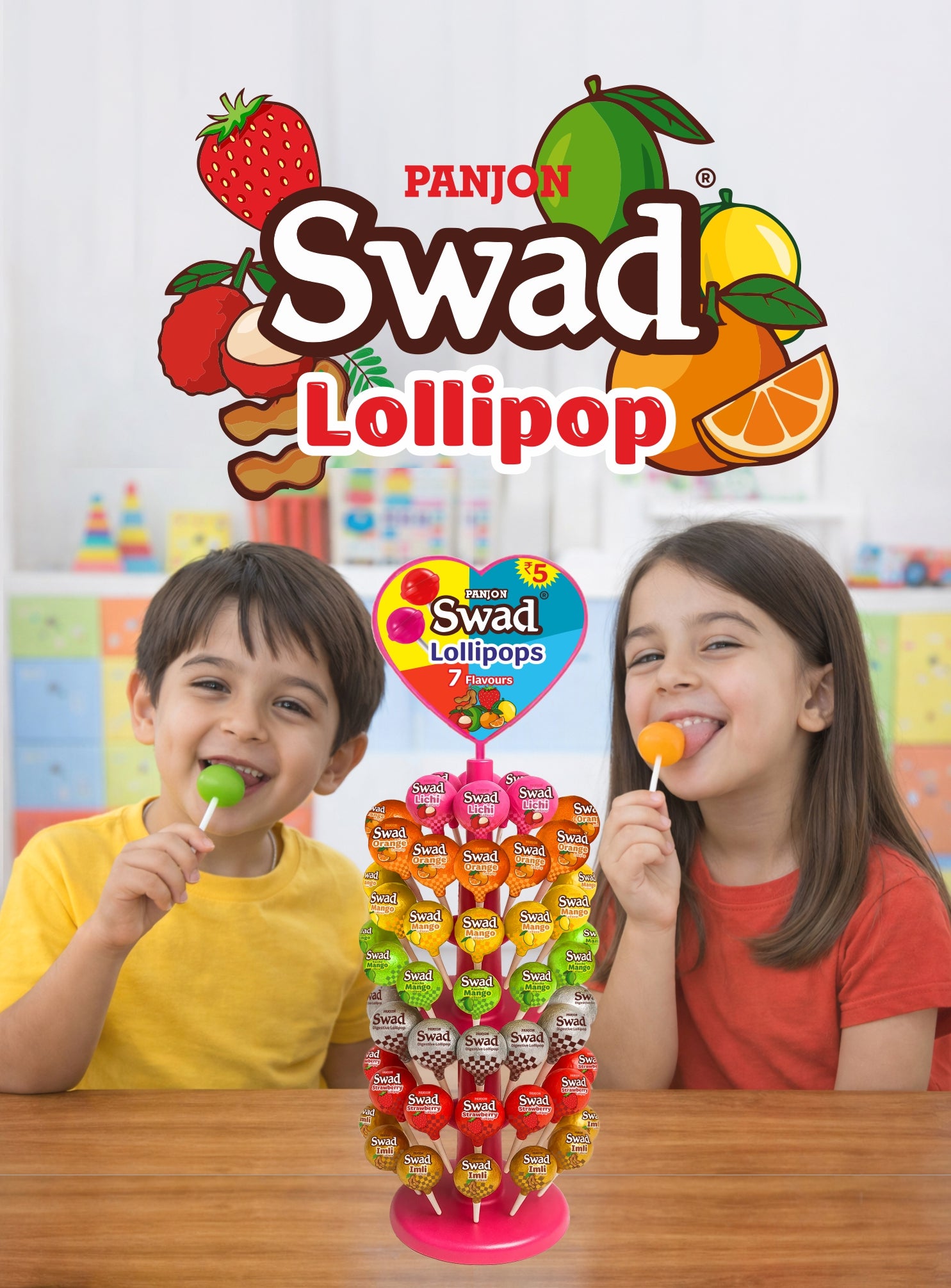 Swad 7 Fruit Flavoured Lollipops – 147 Pieces | Litchi, Strawberry, Mango, Orange, Kaccha Mango, Imli & Digestive | Candy Dispenser Tree Pack, Birthday Party Favors, Kids Return Gifts & Festive Treats