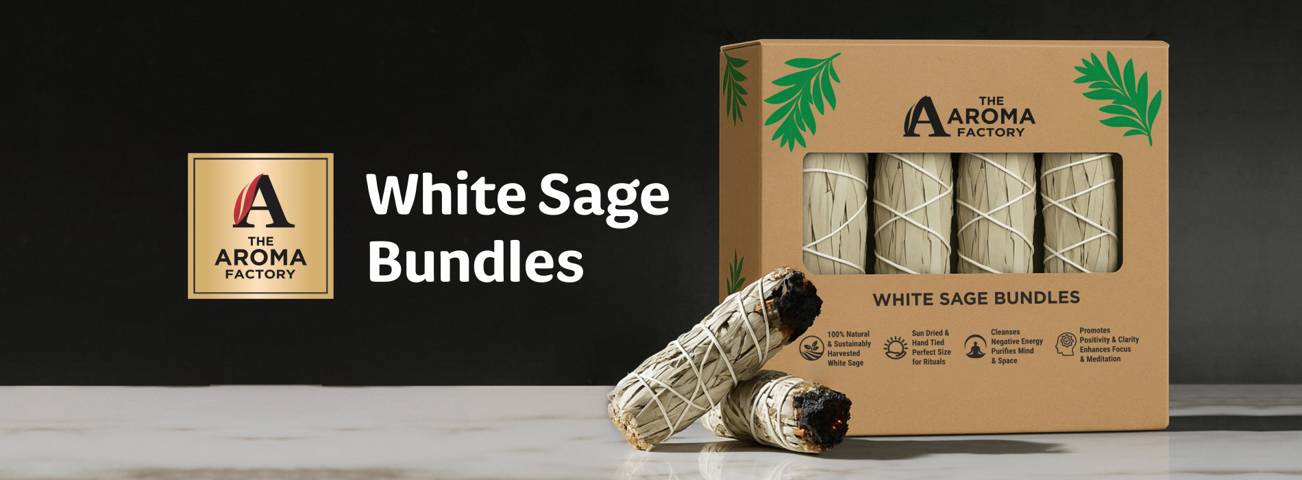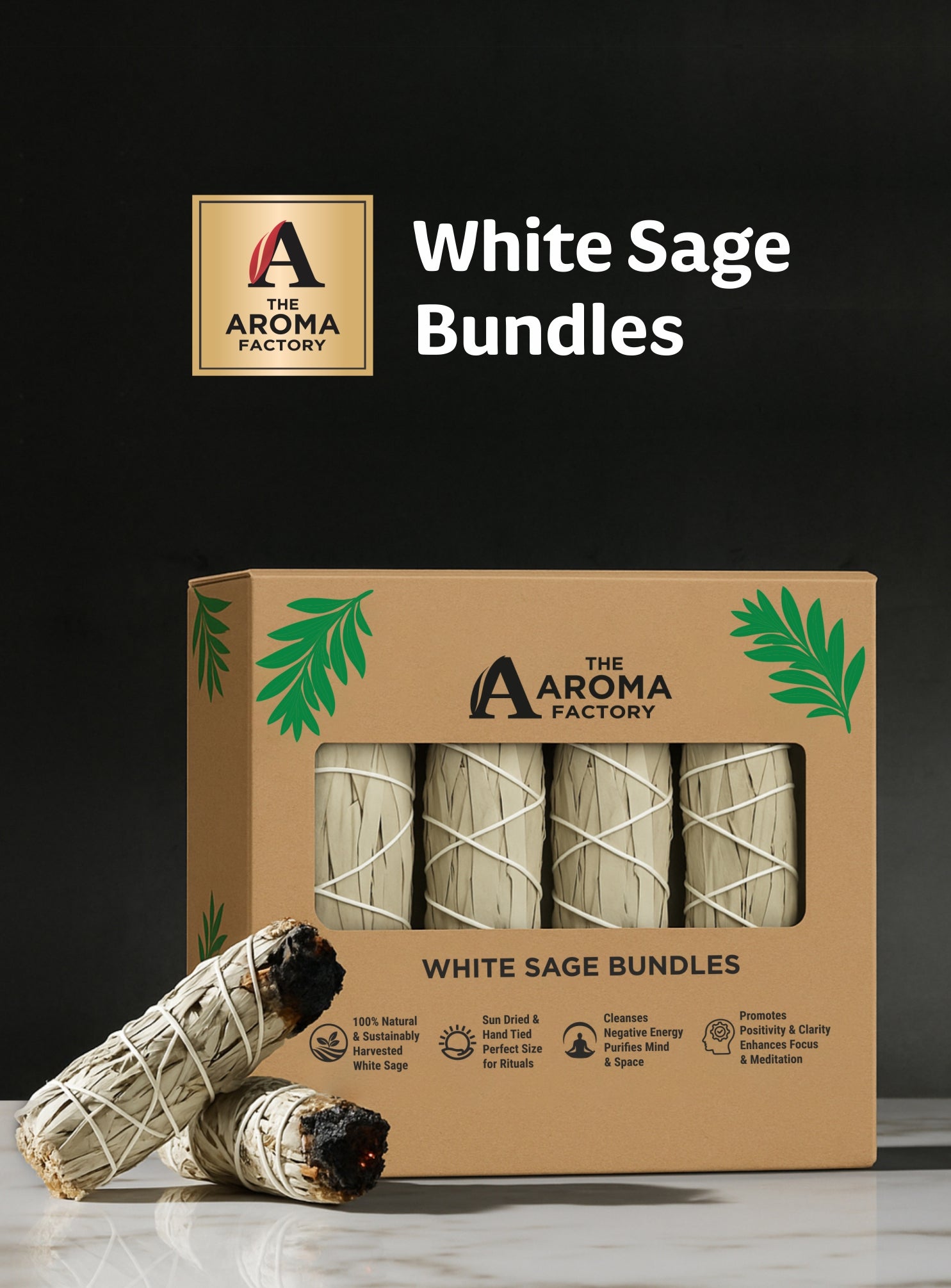 The Aroma Factory Natural White Sage Dry Leaves Smudging Sticks (6 Inch x 30g Each) Removes Negativity, Aura Cleansing, 1 Box (White Sage, Pack of 4)