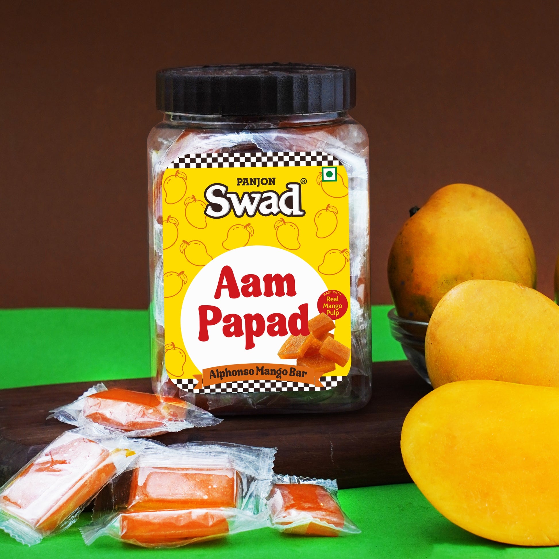 Indulge in the authentic taste of mango with Panjon Swad Aam Papad Candy. Made from real Alphonso mango pulp, this 400g jar of mango toffees offers a deliciously sweet and tangy treat that will remind you of the summer sweetness of ripe mangoes. Perfect for snacking, gifting, or enjoying with family and friends, these mango-flavored candies are a must-try for any mango lover. Each toffee is carefully crafted with natural ingredients to give you a burst of mango goodness in every bite. Whether you're at home, at work, or on the go, Panjon Swad Aam Papad Candy is a convenient and irresistible snack. Enjoy the classic sweet mango flavor in the form of a chewy, flavorful candy with every piece. Stock up your pantry or share the joy with loved ones!