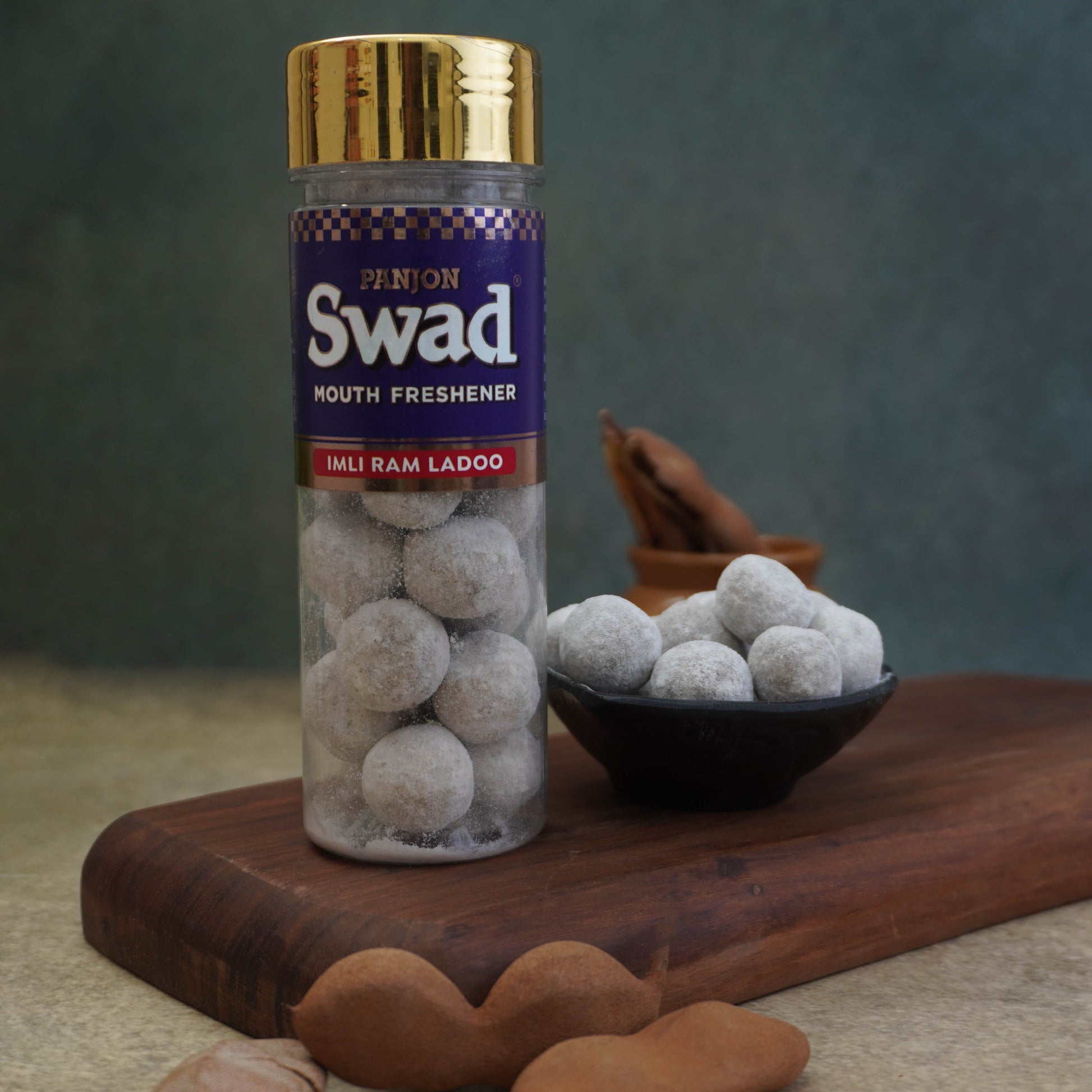 Panjon Swad Imli Ram Ladoo Mouth Freshener (Digestive Pachak, Tamarind Imli Pop Mukhwas) 1 bottle, 130g