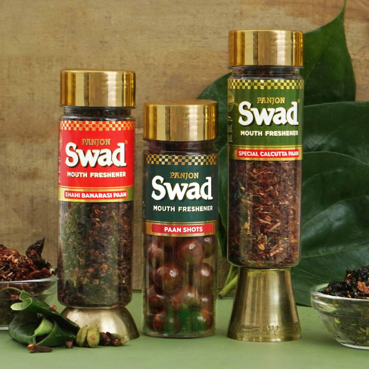 Panjon Swad Pan Mukhwas Combo (Banarasi, Shahi Meetha Paan, Calcutta Paan) Mouthfresheners, 3 bottles, 330g