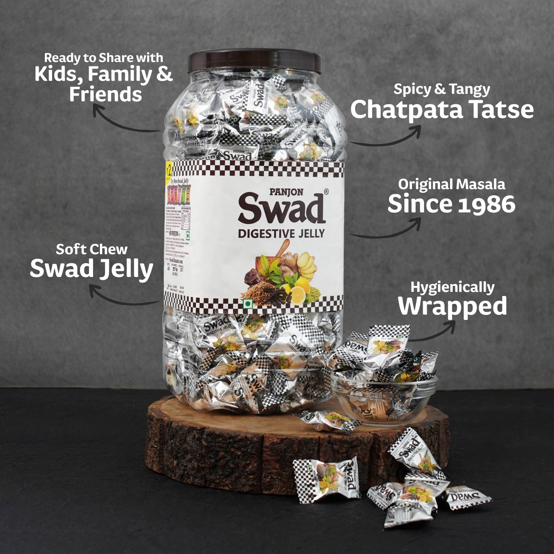 - Convenient & EaSwad, candy, jelly, digestive, masala, toffee, chewy, soft, spicy, sweet, tangy, Indian, snack, treat, kids, adults, jar, bold, tasty, fun, herbal, meetha, khatta, yum. sy to Store – The sturdy jar keeps the jelly candy fresh and makes it easy to store, ensuring you always have a sweet treat on hand when cravings hit!