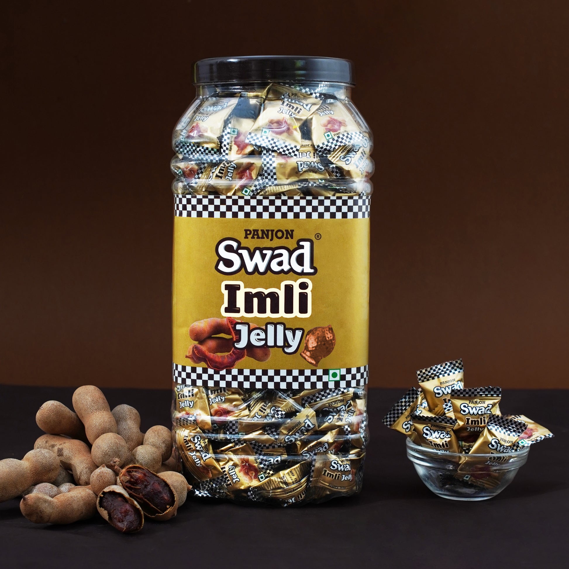 Swad Imli Jelly Candy, Soft & Chewy Fruit Sweets, 900g Jar