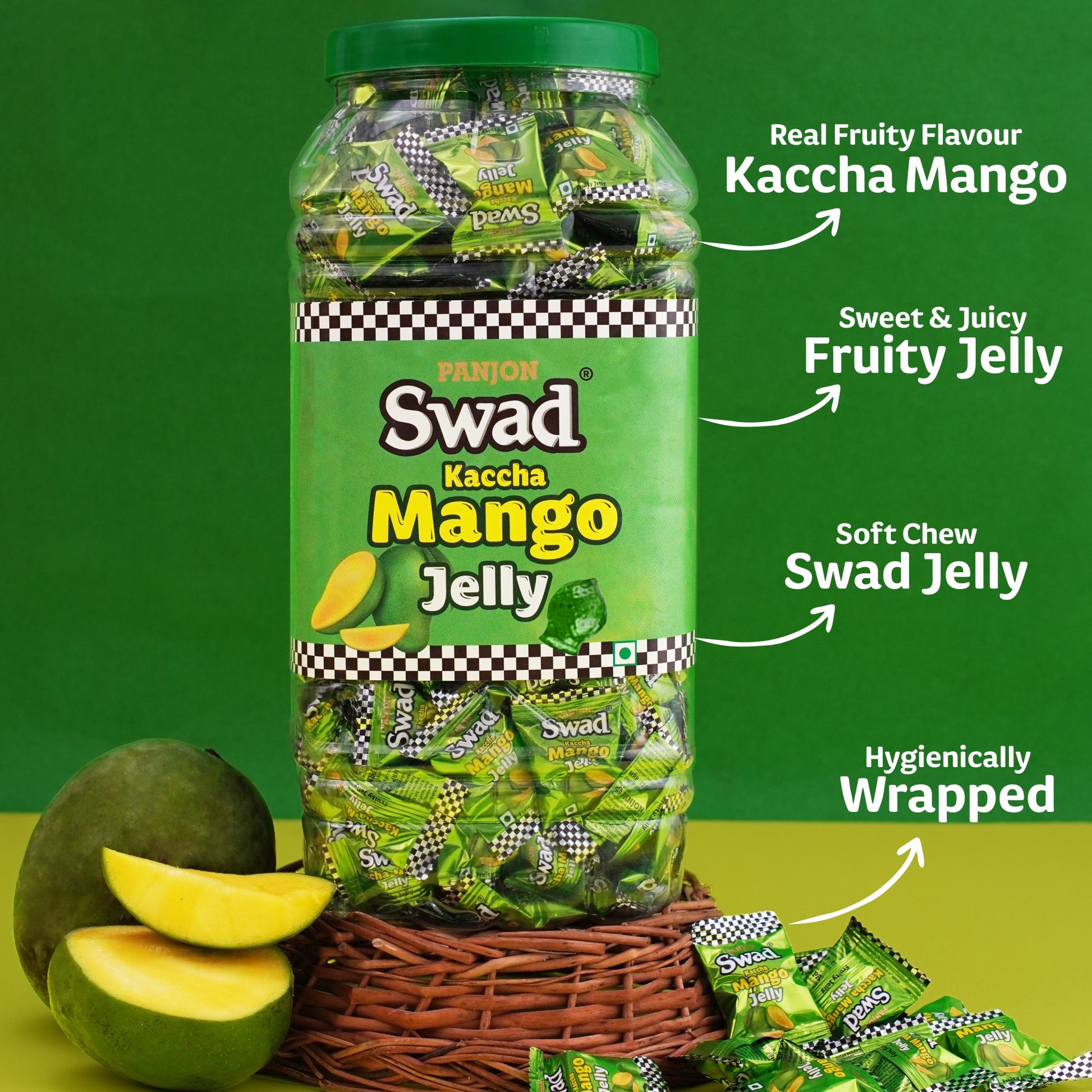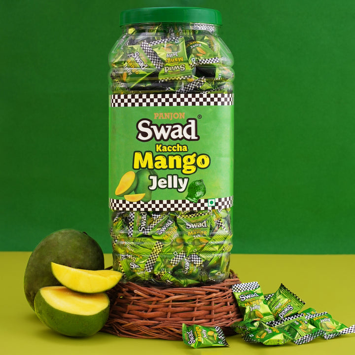 Swad Kaccha Mango Jelly Candy, Soft & Chewy Fruit Sweets, 900g Jar