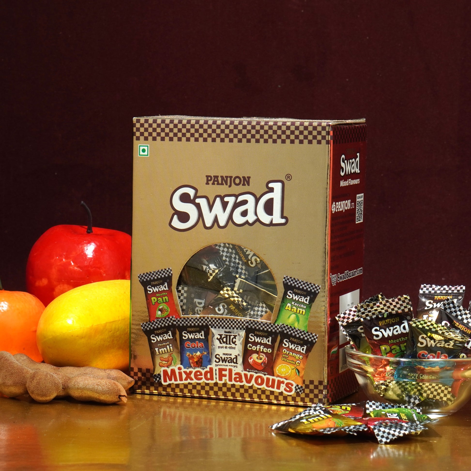 Swad Mixed Flavours Candy Chocolate Gift Box (Original, Kaccha Mango, Imli, Coffee, Cola, Pan, Orange), 125 Toffee Gift Box