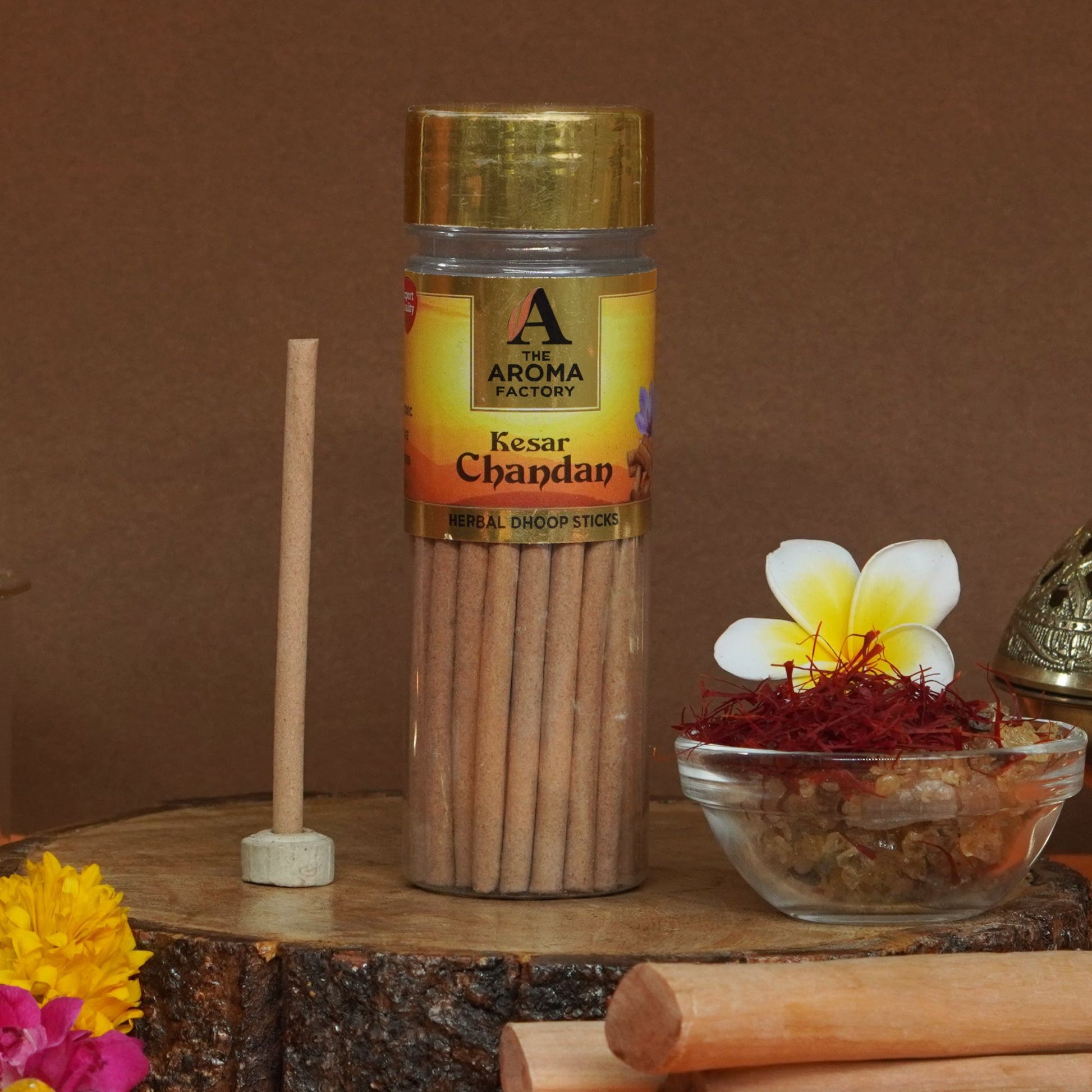 The Aroma Factory Kesar Chandan Dhoop Stick (0% Charcoal 0% Suphates) Herbal Saffron Sandal Incense Dhoopbatti Bottle Pack,100 g